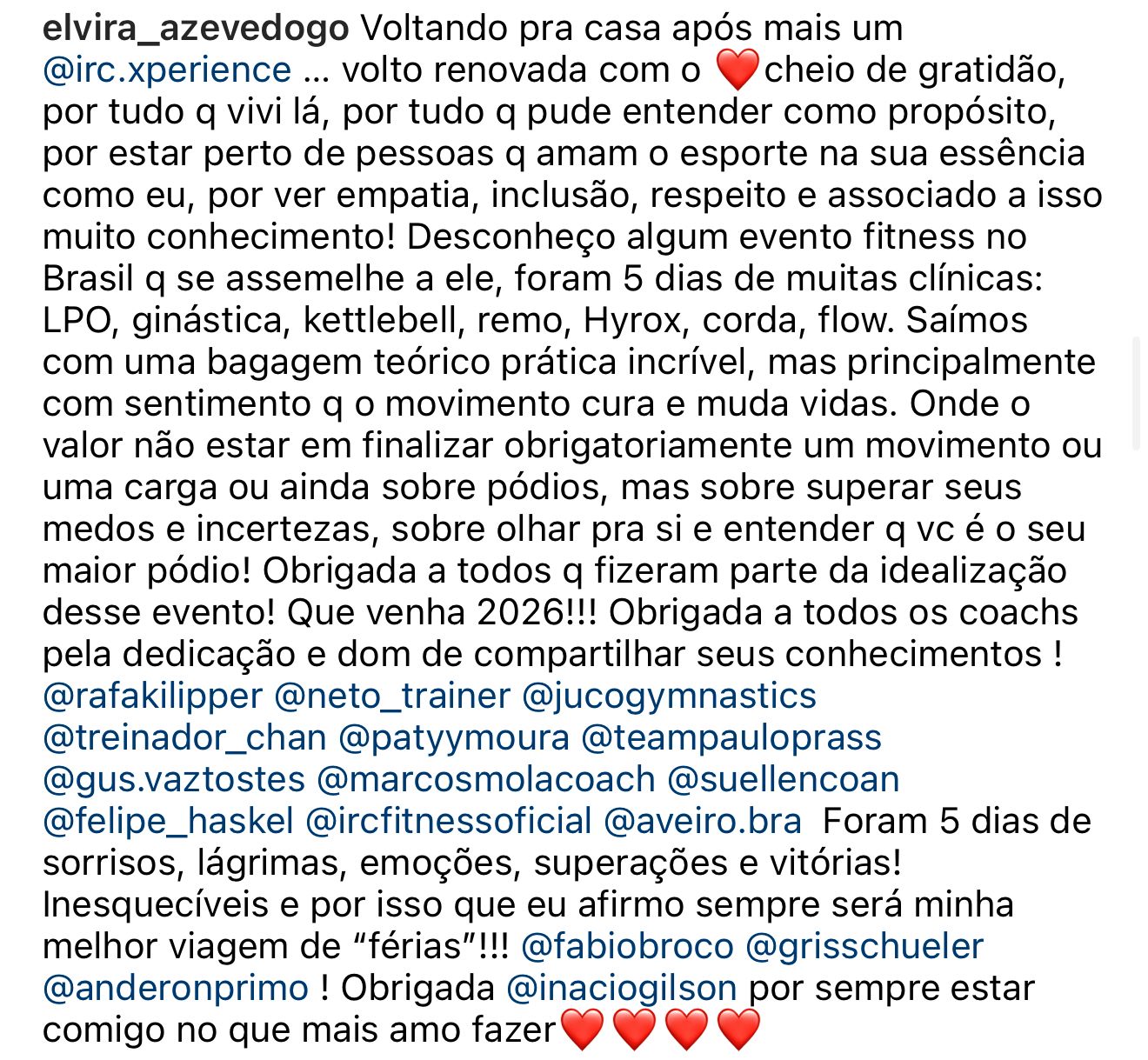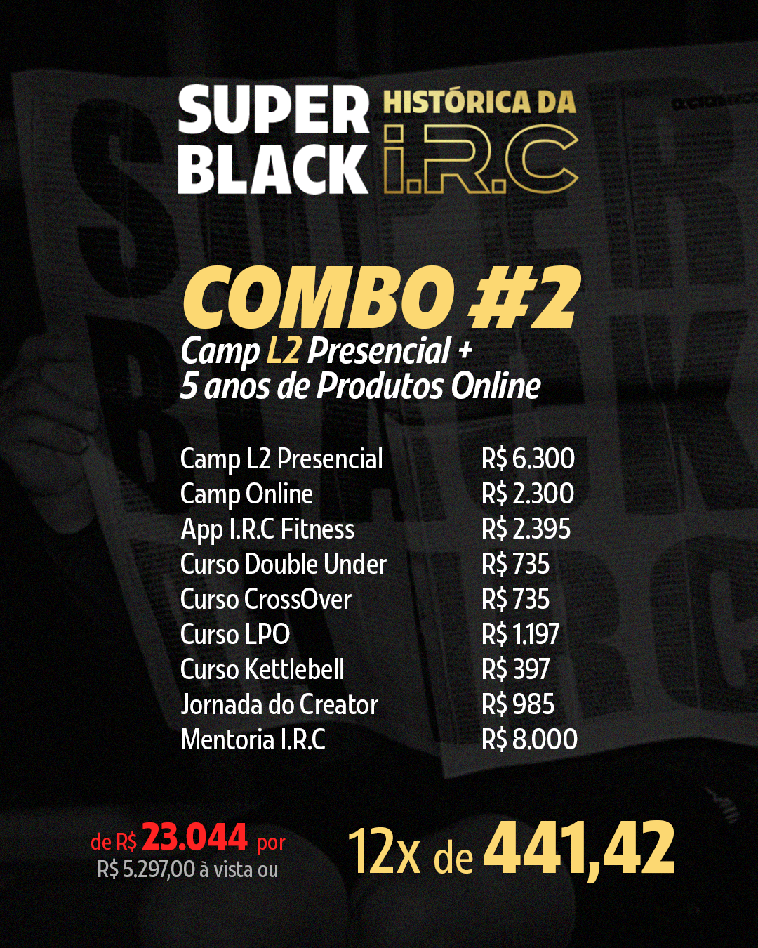 É um dos maiores eventos de wellness da América Latina, com 5 dias de imersão. Reúne o time da I.R.C e os maiores especialistas do universo fitness. Aberto a Coaches e praticantes, oferece clínicas de LPO, Kettlebell, Hyrox e outros, focadas na evolução e aprofundamento no wellness.