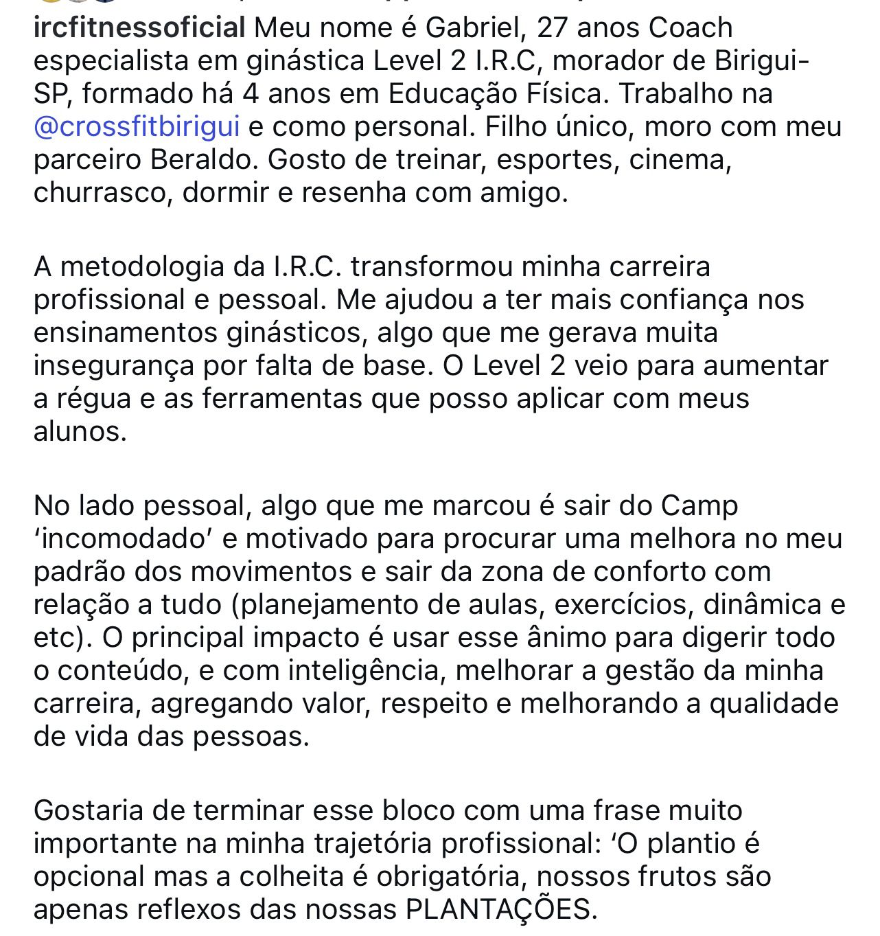 O App I.R.C Fitness é nossa nova Plataforma de treinos. Ginástica aplicada como essência e Treinamento híbrido como evolução. O aplicativo oferece treinos técnicos (ginástica), de calistenia, e flow/mobilidade. Para praticantes e coaches que buscam performance integrada e que valorizam técnica e ciência.