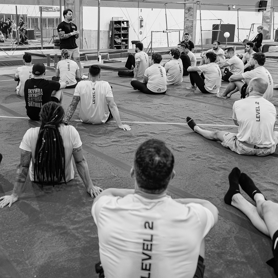 Imersão presencial de 4 dias para quem já fez o Level 1. Ele aprofunda a ciência e a prática da ginástica. O foco é em progressões avançadas, variabilidade motora, treino de core e periodização de ginástica aplicada ao fitness.