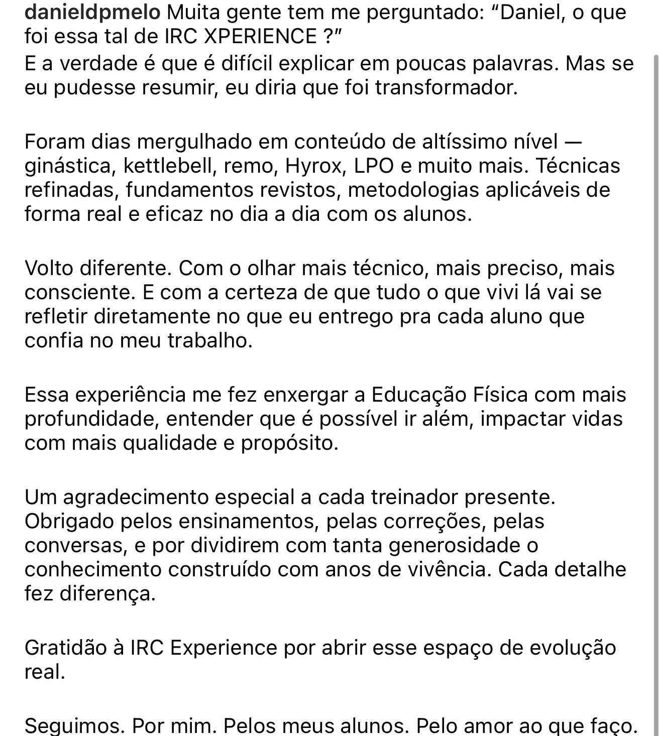 É um dos maiores eventos de wellness da América Latina, com 5 dias de imersão. Reúne o time da I.R.C e os maiores especialistas do universo fitness. Aberto a Coaches e praticantes, oferece clínicas de LPO, Kettlebell, Hyrox e outros, focadas na evolução e aprofundamento no wellness.